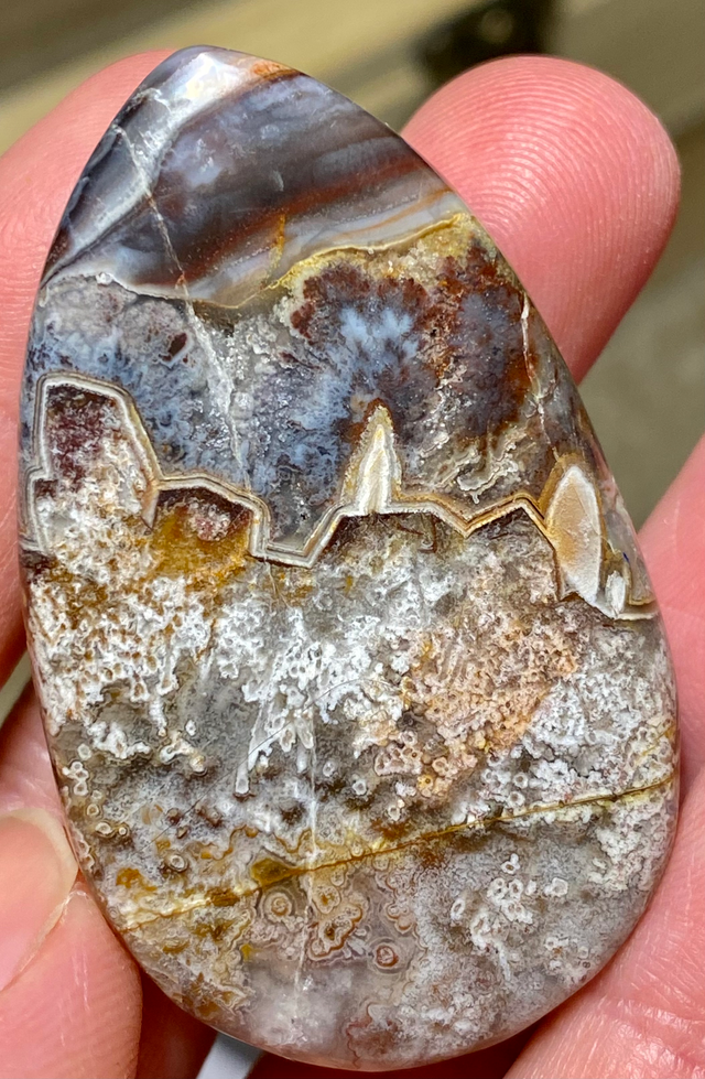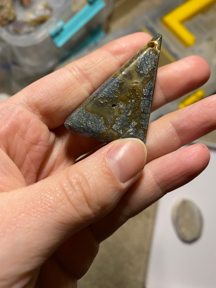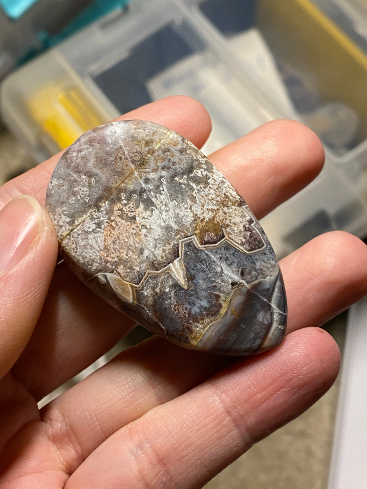 I worked a new material that was interesting - marcasite in agate. It was a stinky material and turns everything black. I'm guessing possibly sulfur in it.