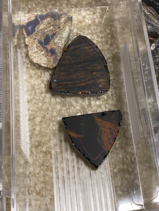 I finished one of the moss cabs I started last week. I also included a red moss, petrified wood, and obsidian piece. It turned out very nice.