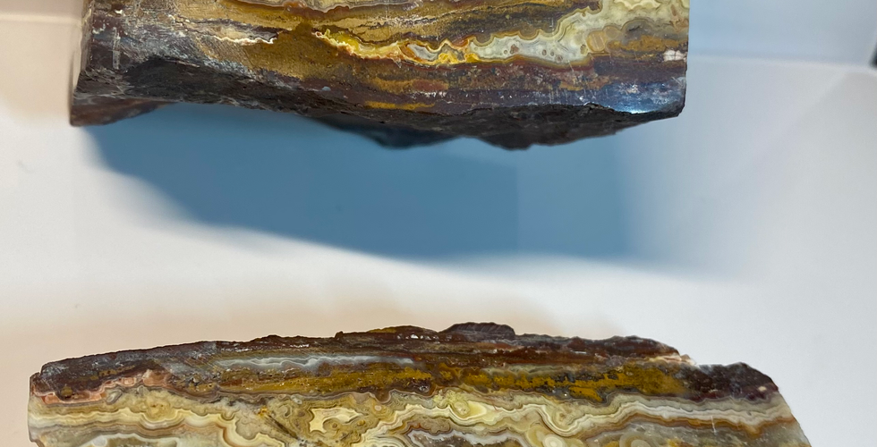 I call this one the rainbow lace. I still have some parts that need to be completed. I also tried different preservation materials (in lieu of complete polish). There is one tumbled piece as well.