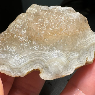 I got really good at spotting them, and they seemed to get nicer and nicer as I went. I learned what to look for: the lumpy potato, maybe a little shiny, usually with some limonite staining. Some of the lighter-colored pieces have some nice quartz and even looked like they had a hint of blue. I focused on the potatoes, and then there were the twisty, windy ones that didn't look like much but turned out to be ribbons of fortification banding. Looking even closer, I saw some sparkly white or yellow druzy. They reminded me of Crowly Ridge agates I'd seen online. I think those are normally from AR to LA. As far as I know, these rocks could have come from anywhere.
